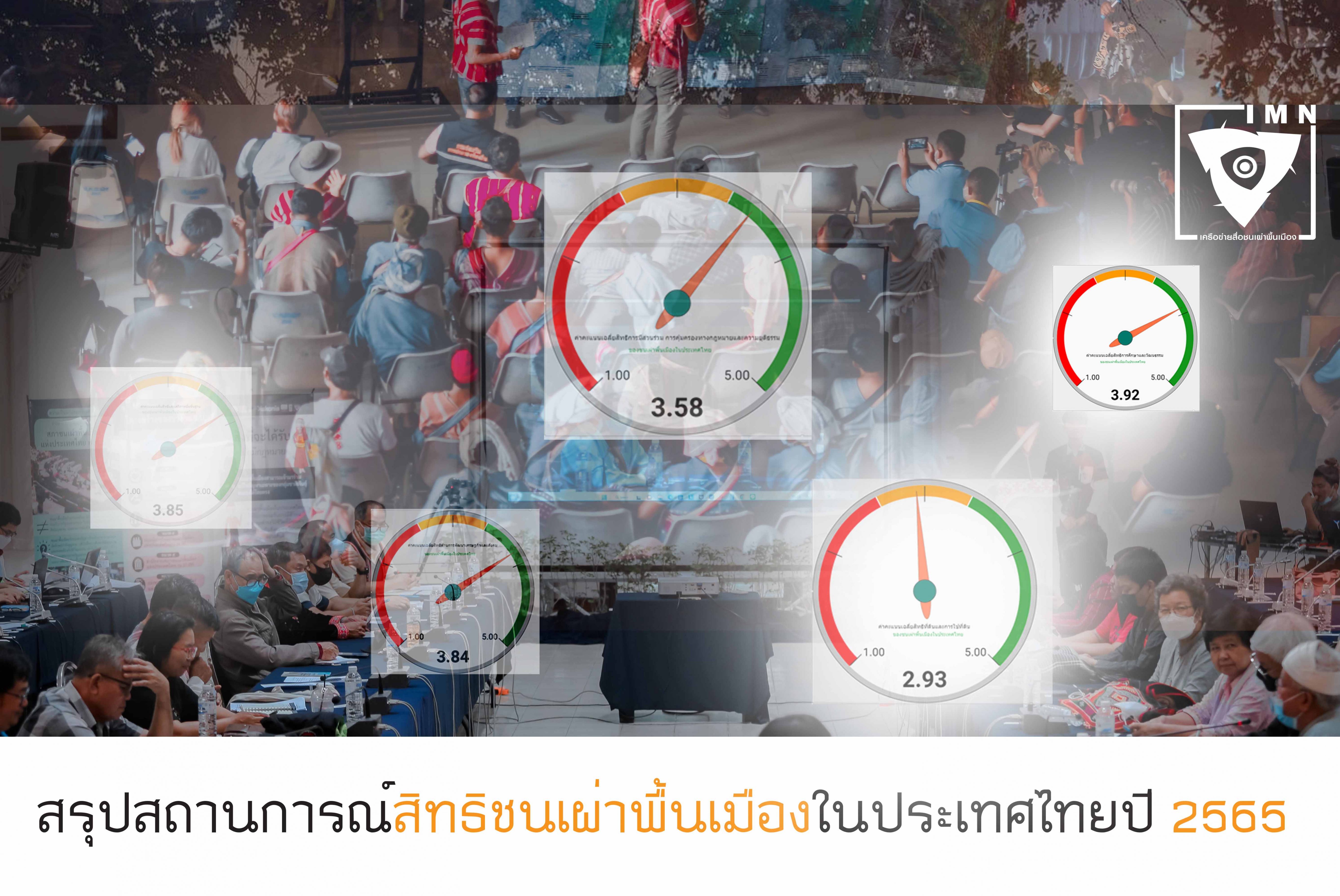 โดยสรุปในภาพรวมของสถานการณ์ด้านสิทธิของชนเผ่าพื้นเมืองในประเทศไทยในปี 2022 พบว่า ชนเผ่าพื้นเมืองในประเทศไทย มีสิทธิโดยรวมอยู่ในระดับมาก ค่าเฉลี่ยอยู่ที่ 3.62 โดยอันดับแรกเป็นสิทธิด้านการศึกษาและวัฒนธรรม (ค่าเฉลี่ย 3.92) รองลงมาเป็นสิทธิและเสรีภาพขั้นพื้นฐาน (ค่าเฉลี่ย 3.85) และสิทธิด้านการมีส่วนร่วม การคุ้มครองทางกฎหมาย และความยุติธรรม (ค่าเฉลี่ย 3.58) ส่วนสิทธิด้านที่ดินและการใช้ที่ดินนั้น ชนเผ่าพื้นเมืองในประเทศไทย มีสิทธิอยู่ในระดับปานกลาง (ค่าเฉลี่ย 2.93)