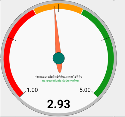 ผลการประเมินสิทธิด้านที่ดินและการใช้ที่ดินของชนเผ่าพื้นเมืองในประเทศไทย พบว่า มีค่าคะแนนเฉลี่ยอยู่ที่ 2.93 หมายถึงมีสิทธิด้านที่ดินและการใช้ที่ดินอยู่ในระดับปานกลาง