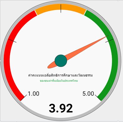 ผลการประเมินสิทธิด้านการศึกษาและวัฒนธรรมของชนเผ่าพื้นเมืองในประเทศไทย พบว่า มีค่าคะแนนเฉลี่ยอยู่ที่ 3.92 หมายถึงมีสิทธิด้านการศึกษาและวัฒนธรรมอยู่ในระดับมาก