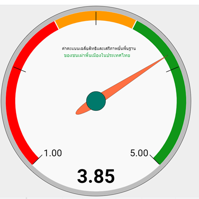 การประเมินสถานการณ์สิทธิชนเผ่าพื้นเมืองทั้ง 5 ด้านดังกล่าว ใช้ระดับค่าคะแนนเฉลี่ยที่ได้จากการตอบแบบสำรวจของตัวแทนหมู่บ้านของกลุ่มชาติพันธุ์ตั้งแต่ระดับ 1 ถึง 5 คะแนน ซึ่งแต่ละระดับคะแนน มีความหมายดังนี้