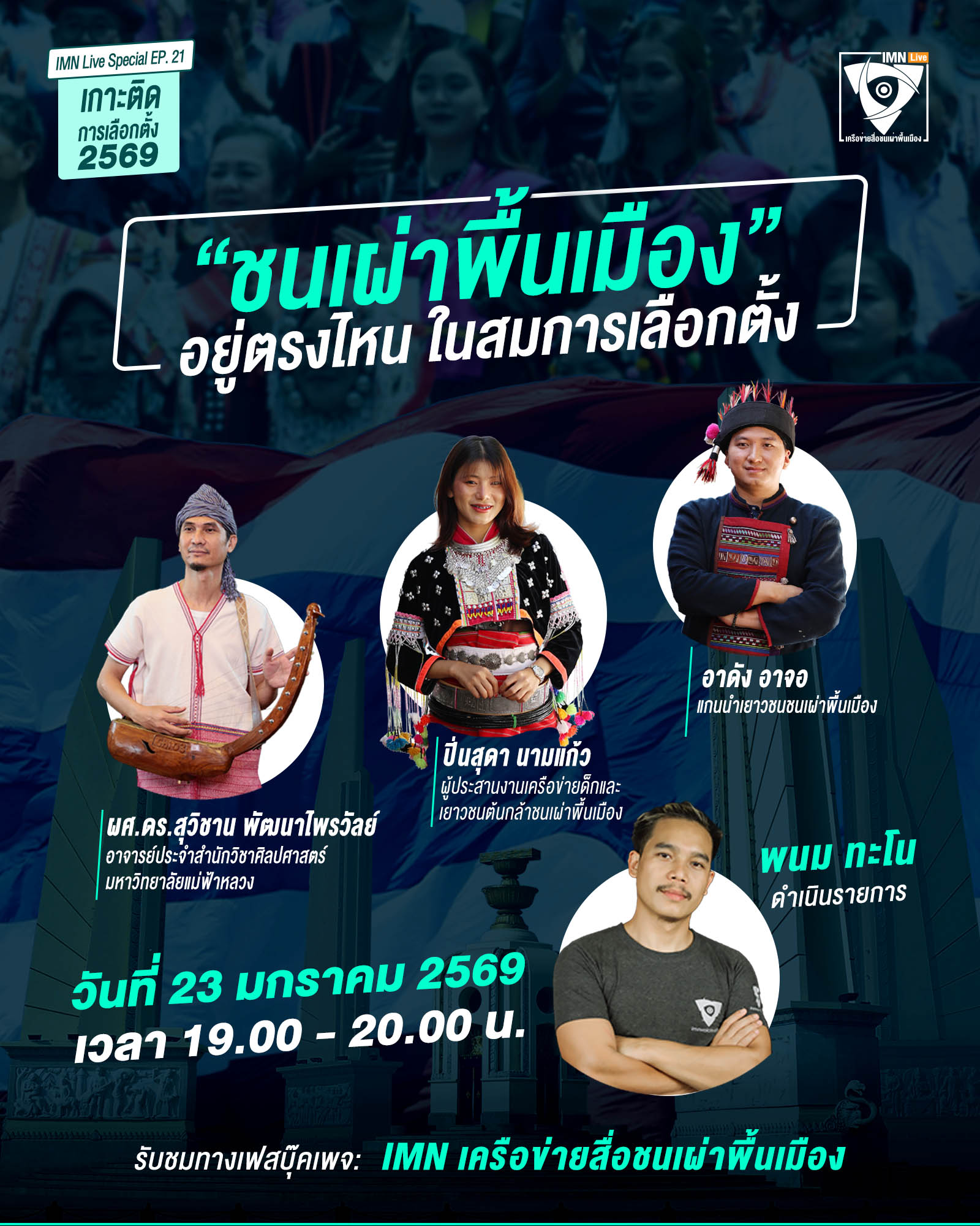ใน IMN Live Spacial EP.#21 หัวข้อ:“ชนเผ่าพื้นเมือง: อยู่ตรงไหน ในสมการการเลือกตั้ง 2569” ที่จัดขึ้นเมื่อวันที่ 23 มกราคม 2569 เวลา 19.00–20.00 น.