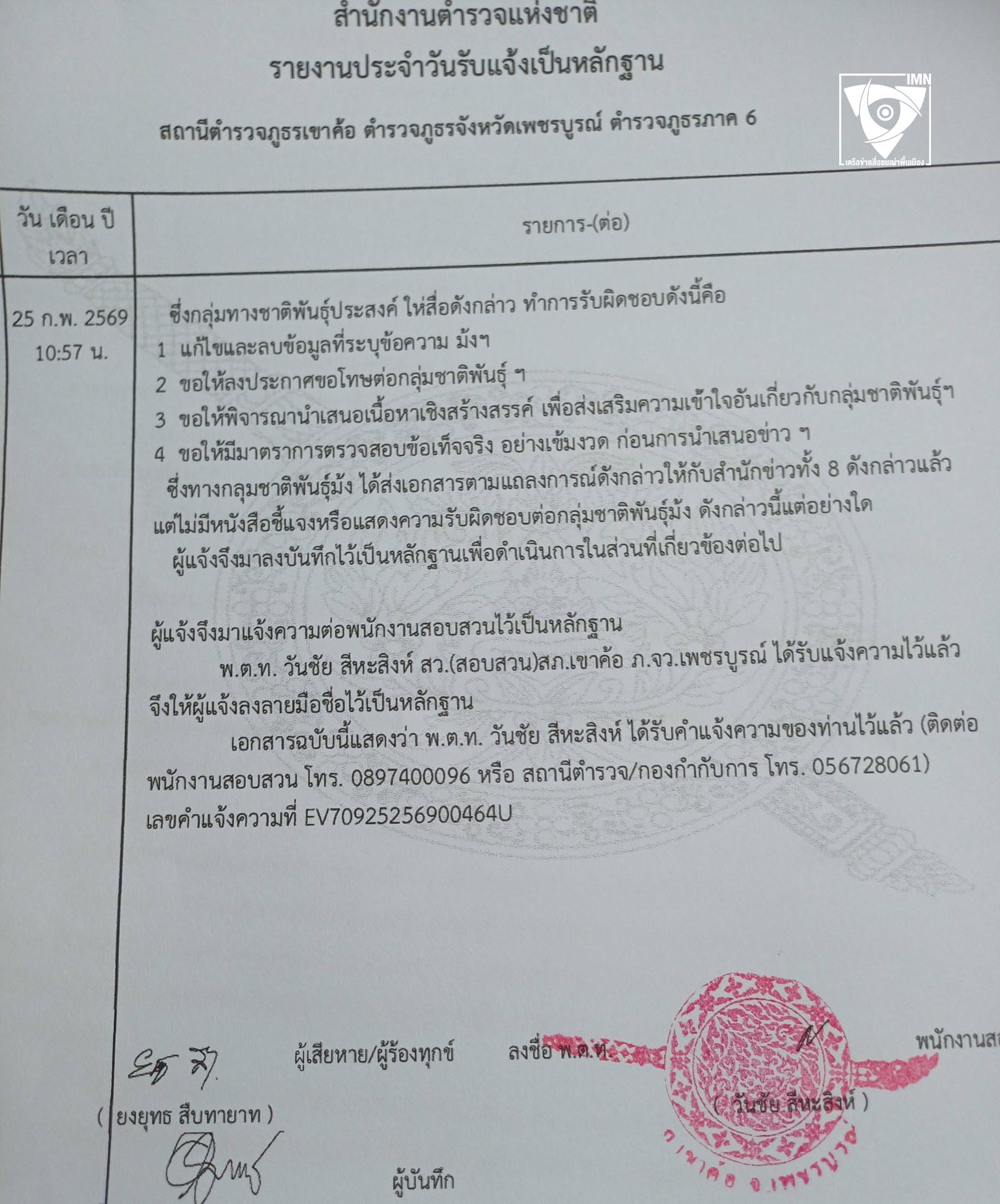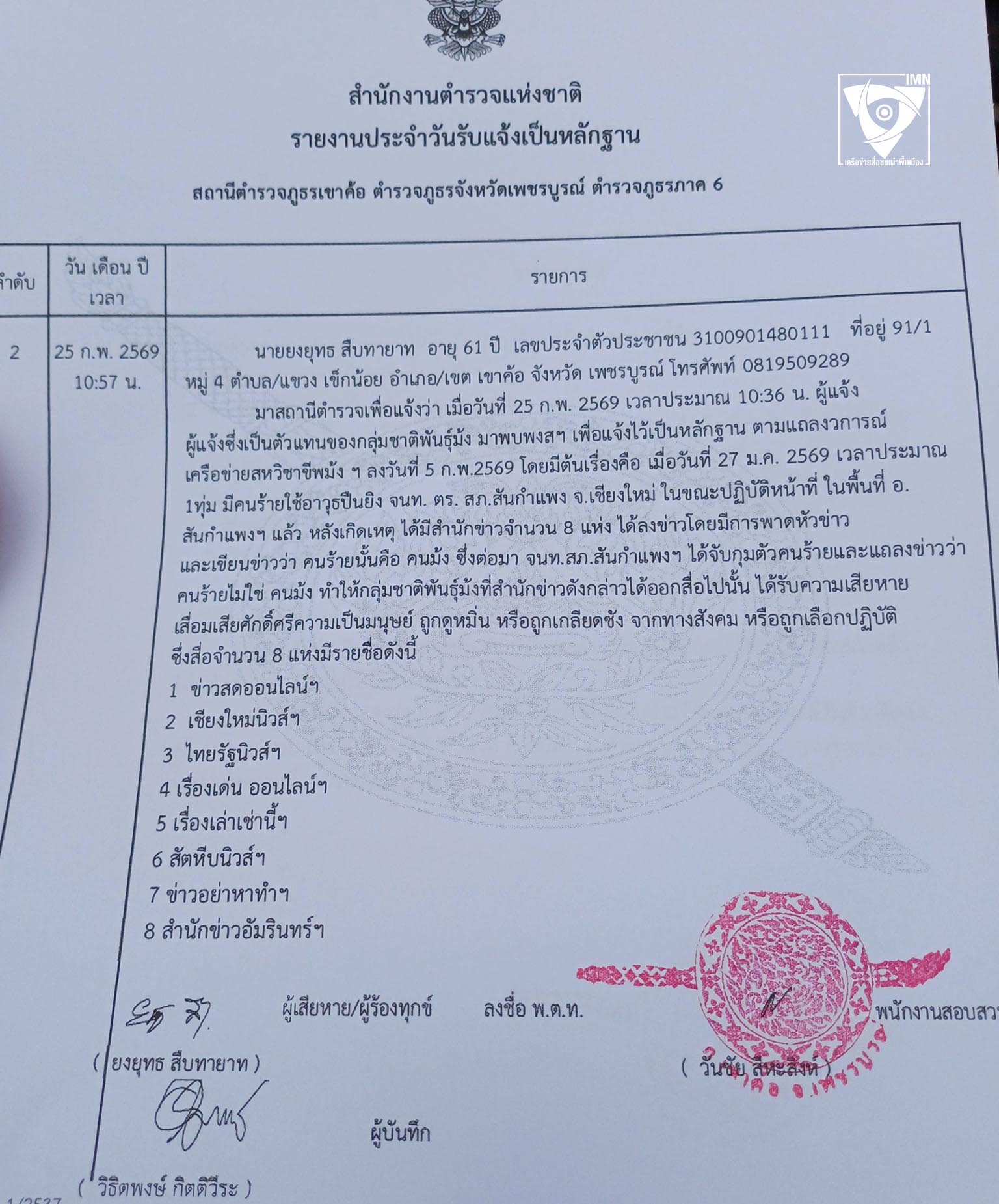 จนกระทั่งถึงวันนี้ (28 ก.พ.) ยังปราศจากวี่แววความพยายามแก้ไขข้อผิดพลาดในการทำงานของสื่อมวลชน เป็นเหตุผลให้ ยงยุทธ สืบทายาท ทนายความชาวม้ง ผู้อาศัยในพื้นที่ตำบลเข็กน้อย อำเภอเขาค้อ จังหวัดเพชรบูรณ์ ได้เข้าแจ้งความเพื่อลงบันทึกประจำวันแก่เจ้าหน้าที่ตำรวจ สถานีตำรวจภูธรเขาค้อ ฐานที่สื่อเหล่านั้นเผยแพร่ข้อมูลอันเป็นเท็จ จนกลุ่มชาติพันธุ์ม้งทั้ง 2.5 แสนคนในประเทศไทย รับความเสียหาย ลักษณะถูกเหมารวม ดูหมิ่น ทำให้สังคมเกลียดชัง ซึ่งในหลักฐานการแจ้งความปรากฏรายชื่อสำนักข่าวได้แก่ ข่าวสดออนไลน์ เชียงใหม่นิวส์ ไทยรัฐนิวส์ เรื่องเด่น ออนไลน์ เรื่องเล่าเช้านี้ สัตหีบ นิวส์ ข่าวอย่าหาทำ และสำนักข่าวอมรินทร์